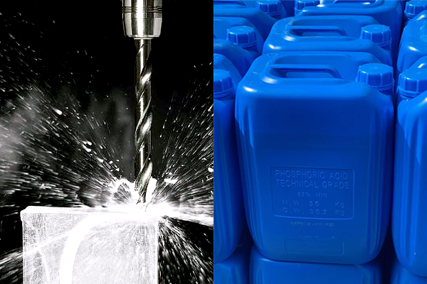 当磷酸与其他强酸配合使用时,它起到缓冲试剂的作用,用以控制溶液pH值,使之保持稳定。在特定的范围内可利用其特殊的作用,如折叠的或卷边的零件的中间酸洗用磷酸酸洗则可防止返锈而影响向后续加工。磷酸还可用于预处理钎焊工件,因在高温高浓度情况下,磷酸对金属氧化物溶解能力强,可用于钎焊及其氧化区表面的酸洗。用磷酸清洗生锈的金属表面在去锈的同时可形成磷化保护膜对金属起保护作用。由于磷酸清洗存在其钙盐[Ca3(PO4)2]难溶的问题,因此磷酸不适用于清除水垢;其铁盐Fe3(PO4)2]在低浓度磷酸中溶解度低也是其缺点,因此除在一些特殊情况下,通常不使用磷酸作酸洗剂。